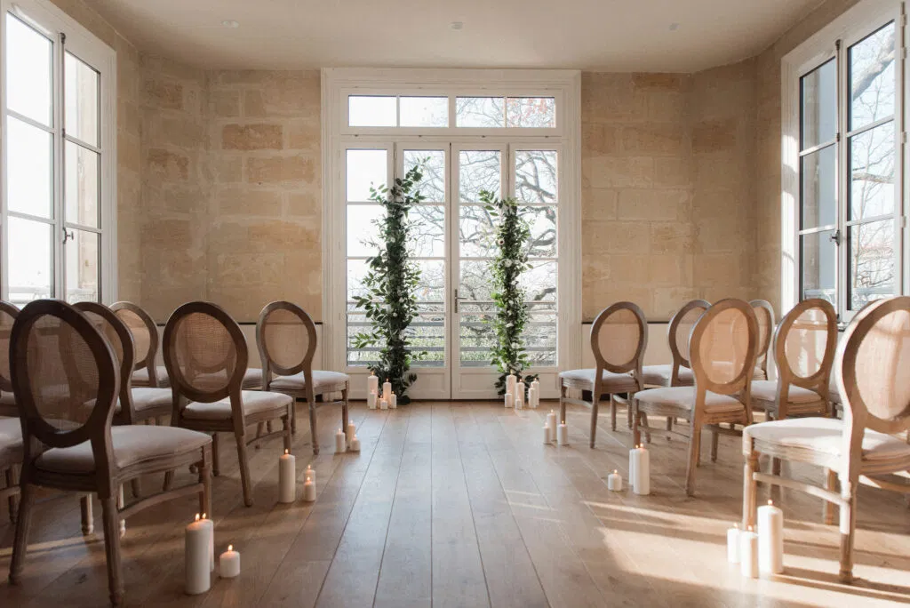La majorité des couples recherchent une cohérence visuelle et émotionnelle entre leur lieu de réception, leur tenue, la décoration et l’ambiance générale du mariage. Certains choisissent également de fleurir l’extérieur : allées, bancs, panneaux de bienvenue ou coin chill, créant ainsi une expérience immersive dès l’arrivée des invités.